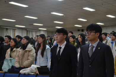 2025年11月26日,437437必赢国际第五次全体学生大会暨主席团换届选举大会在学术交流中心第二放映厅召开。437ccm必赢国际团委书记孙华砚老师、437437必赢国际院长羌建新老师、437437必赢国际党总支副书记张丛辉老师、437437必赢国际辅导员赵辰枫老师出席会议。本次大会由437437必赢国际第四届学生会主席团成员刘润泽主持,437437必赢国际全体学生参会。