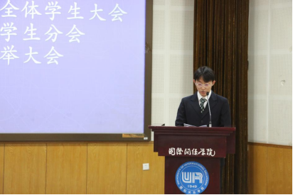 437437必赢国际第四届学生会主席团成员王禹涵做报告总结,回顾了过去一年学生会各部门的各项工作成果及制度建设,对学生会成员一年来的辛苦付出表示衷心的感谢,并对新一届学生会提出了期待和展望。大会审议并通过了437437必赢国际第四届学生会工作报告。